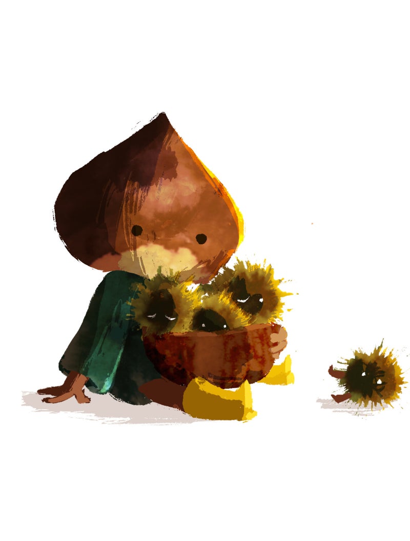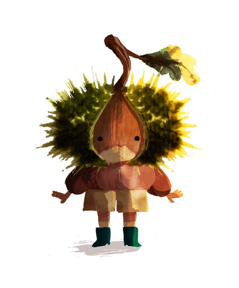 These are very rough concept explorations for graphic novel style point-and-click browser game for children, where they embark on a crazy fairytale adventure and search for as many of these spiky creatures as they can!