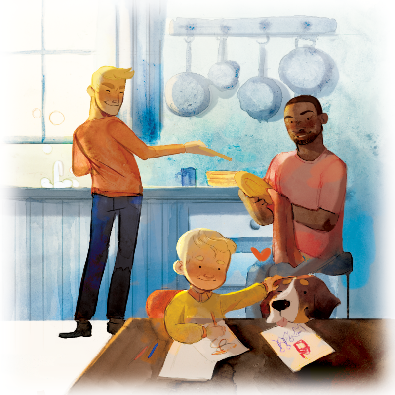 Knoet & Moos is a puzzle book for young children created by Diet Hendriks, with special focus on inclusion within different family compositions. With all the different puzzle pieces, Knoet the dog and Moos the boy can live together with a solo mother, two dads, a mom and a dad, you name it!